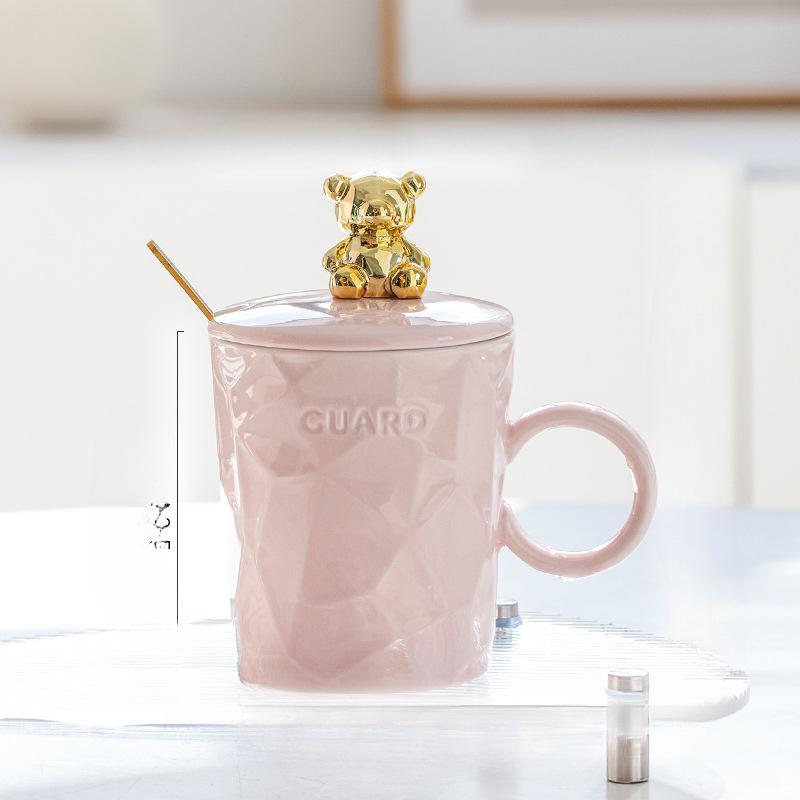Кружка Девочка-Медведь Легкая Роскошная Керамическая Чашка с Крышкой Ложкой Высоко Выглядящая Парная Кофейная Чашка Студенческая Чашка для Воды 300ml