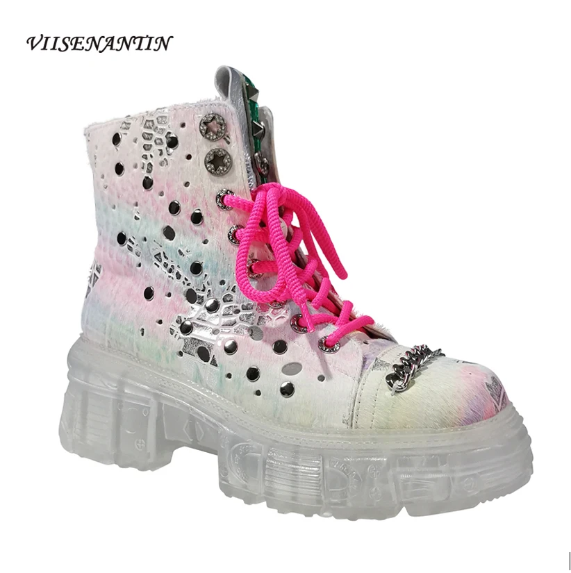 Winter Women Shoes Slippers With Charms Purple Sandals Indoor Female Keep Warm Short Plush 3cm Flat Platform Fur Shoes For Woman
