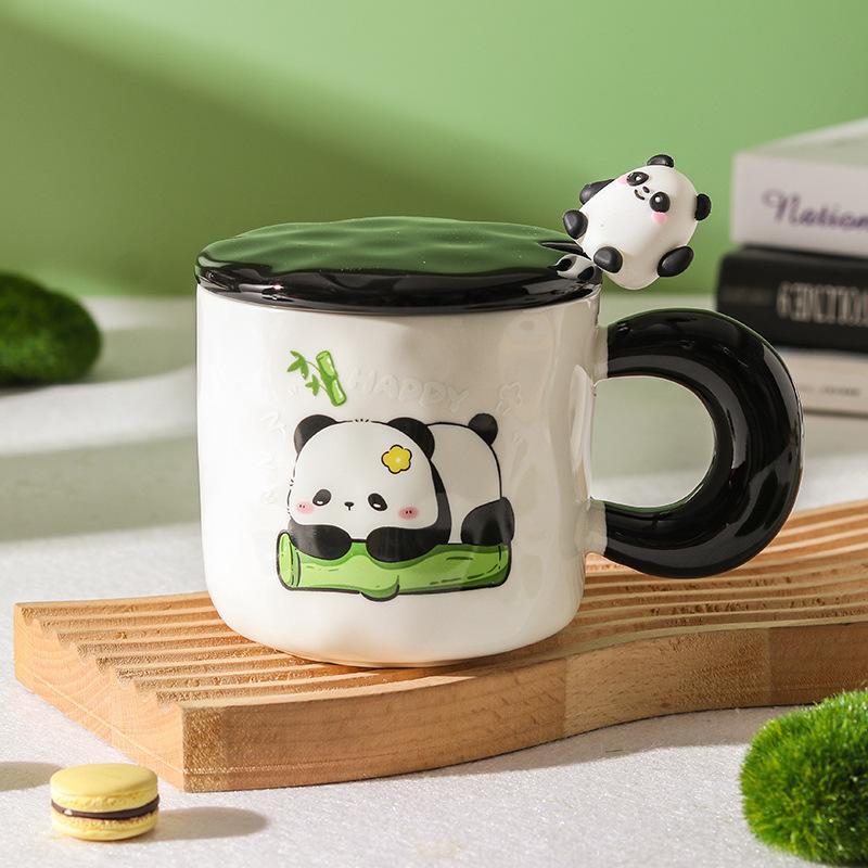 Кружка Панда Высокой Ценности Большая Керамическая Кружка с Крышкой и Ложкой для Пары Домашняя Чашка для Питьевой Воды Чашка для Кофе для Девочек 401-500ml