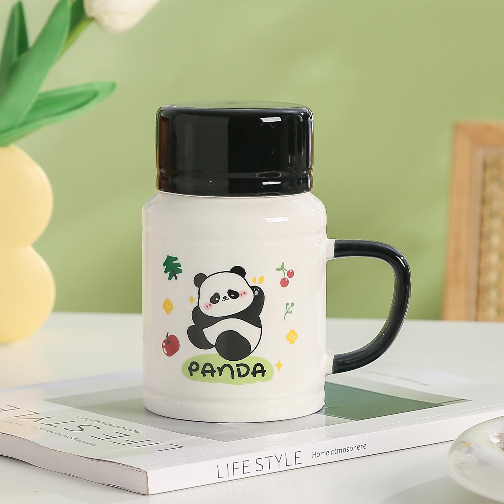 Кружка Панда Высокоточная Мультяшная Керамическая Чашка с Крышкой Сувенир Свадебный Подарок для Мальчиков и Девочек 401-500ml
