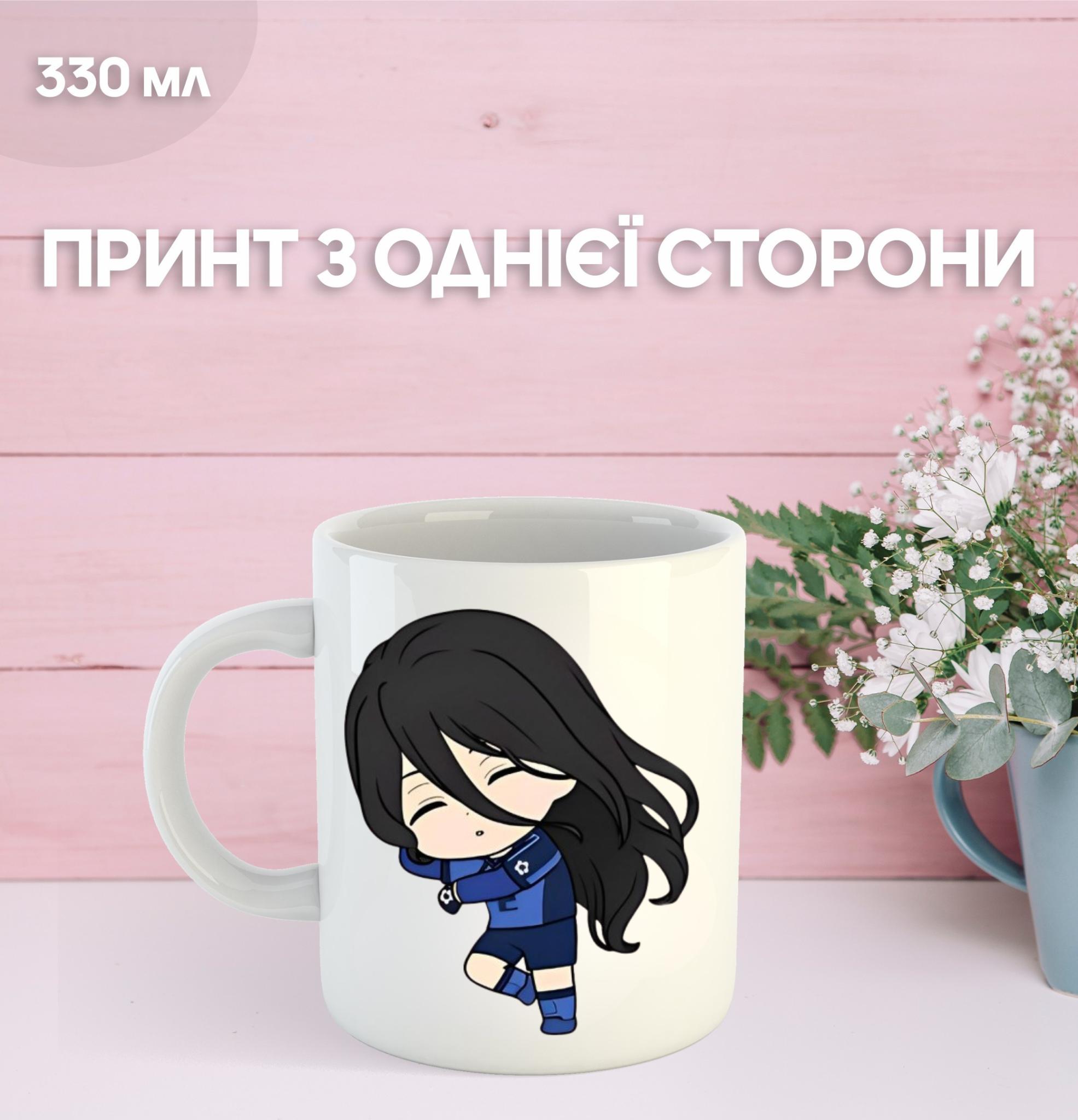 Кружка Синяя тюрьма Блю Лок с принтом керамическая чашка Blue Lock 330 мл 9.5 білий