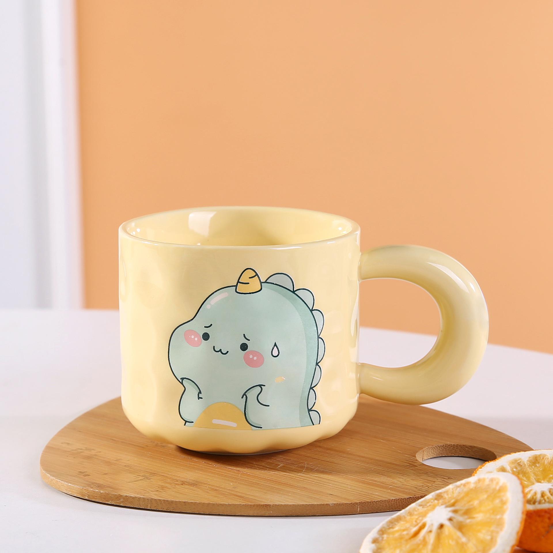 Кружка-динозавр для молока Фуфу, милая керамическая чашка для девочки с крышкой и ложкой, офисная парная кофейная чашка, чашка для завтрака 401-500ml