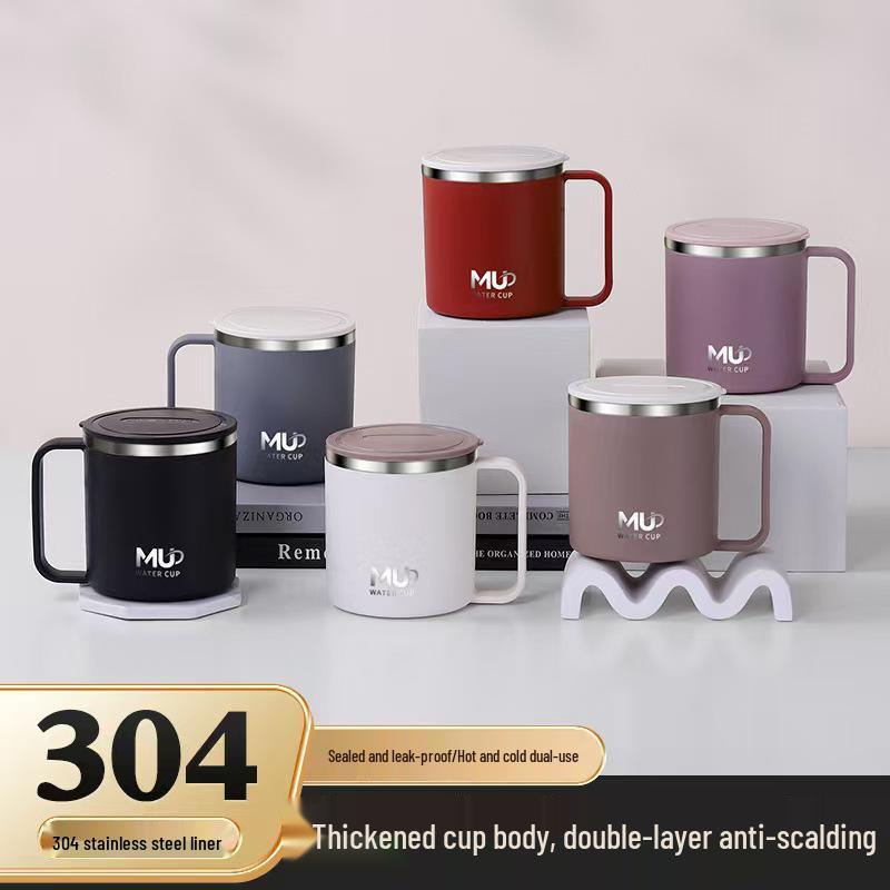 Кружка из нержавеющей стали 304 с двойными стенками, герметичная, с крышкой - Идеально подходит для офиса, чая или в качестве подарка для студентов 400ml грязно-белый