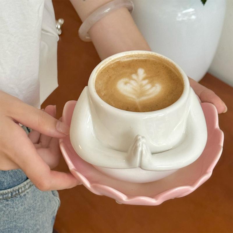 Кружка керамическая высокого качества, милая, творческая, личность, поклоняющаяся Будде, держатель лотоса, персиковый хип-хоп, кофейный сервиз, украшения для рабочего стола, учебы Cup and saucer