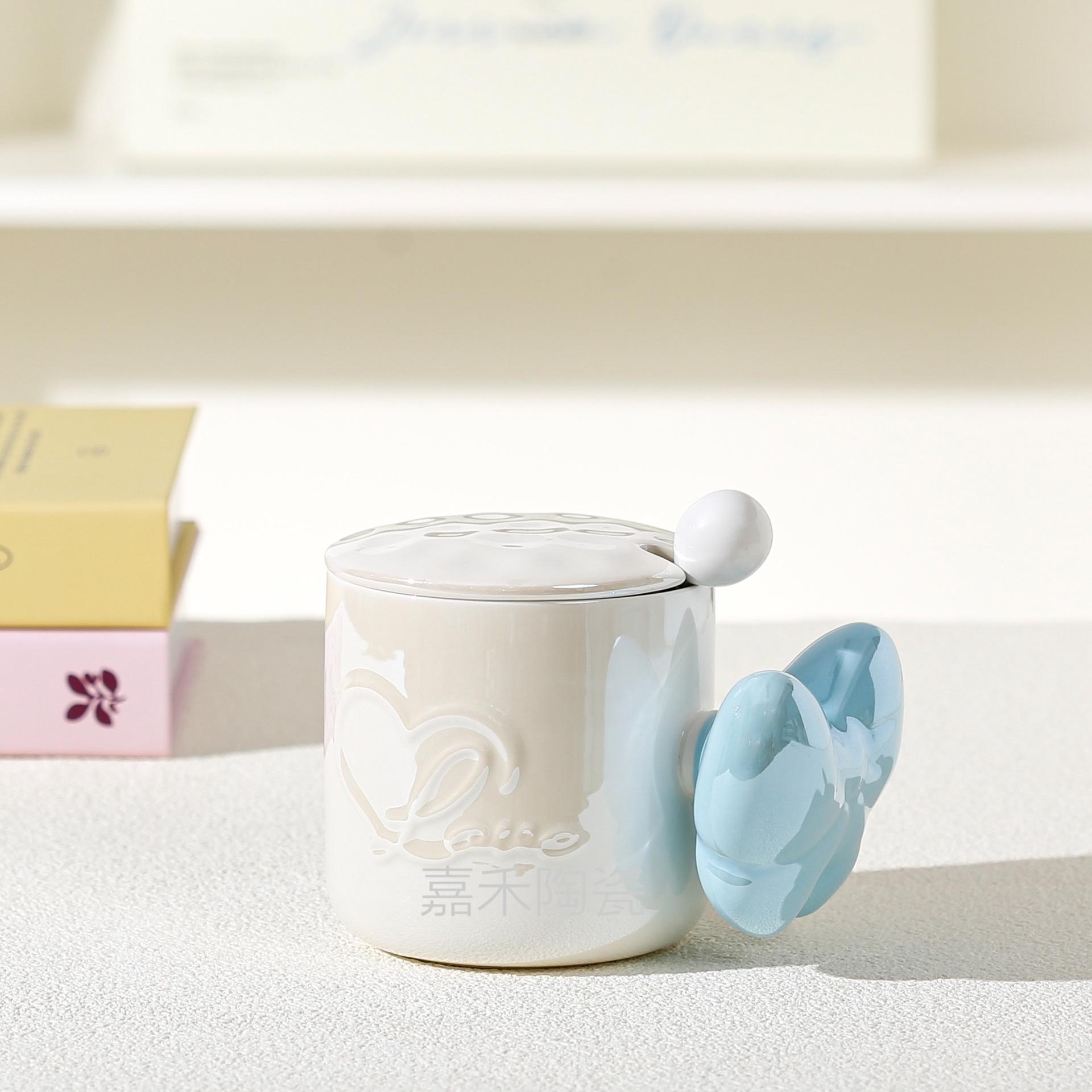 Кружка кофейная с крышкой, перламутровая глазурь, бантик, девчачья, высокая ценность, чашка для воды, керамическая чашка, подарок, креативная чашка 400m