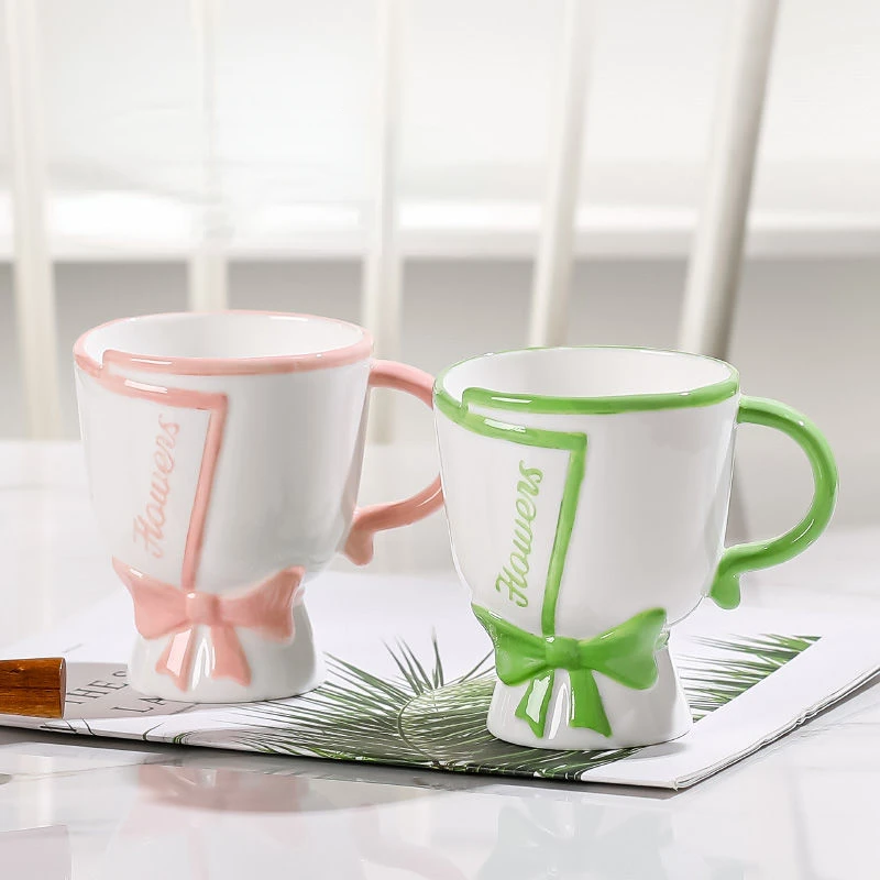 Кружка с бантом для девочек, высокая термостойкость, подарок на день рождения, домашняя чашка