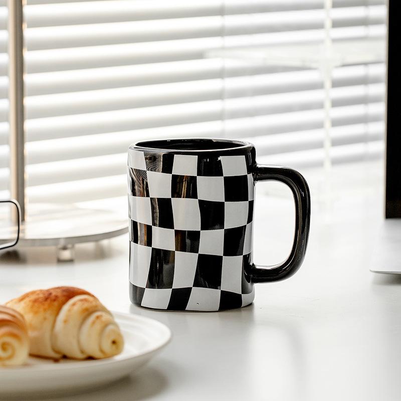 Кружка с шахматным узором, неровная, чашка для воды, парная, высокая ценность, керамическая чашка, чашка для льда, подарок 501-600ml