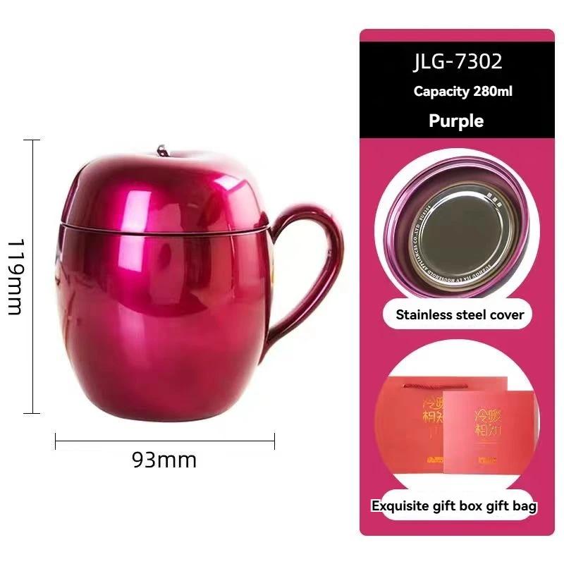 Кружка 280 мл в форме яблока, в подарочной упаковке, из нержавеющей стали, с термоизоляцией, кружка для воды, кружка для кофе для девушек, парная кружка для молока на завтрак 280ML фиолетовый