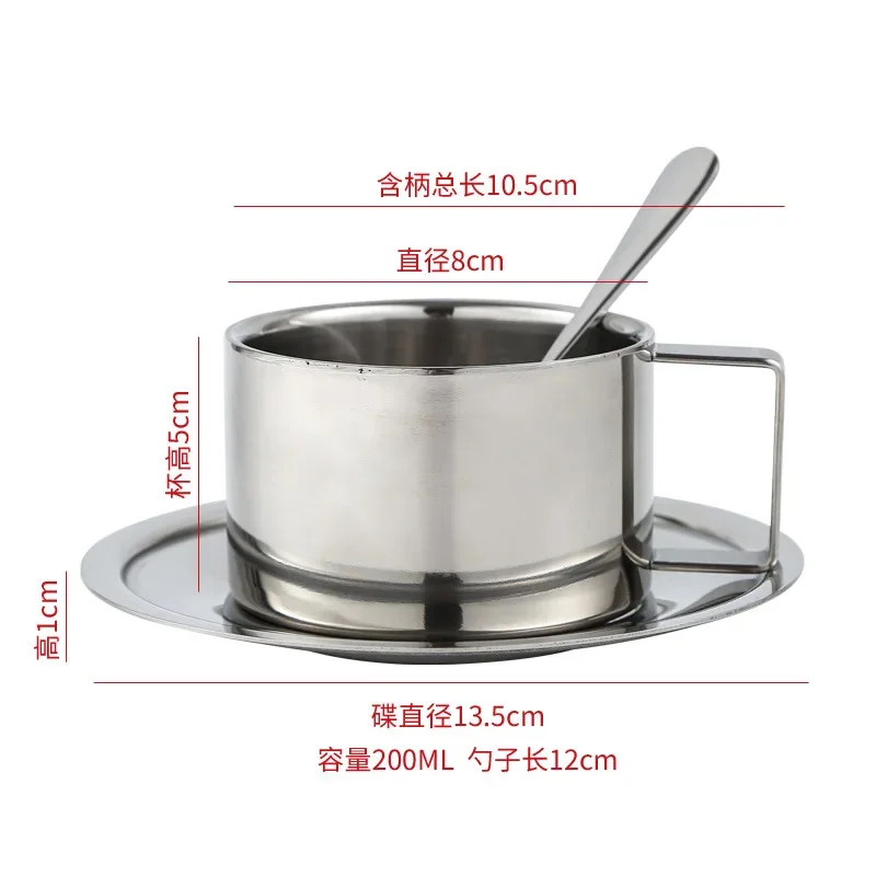 Кружки для кофейных чашек из нержавеющей стали 304, отличные чашки для капучино с ложкой и блюдцем, подходят для любителей кофе и чая, идея для подарка