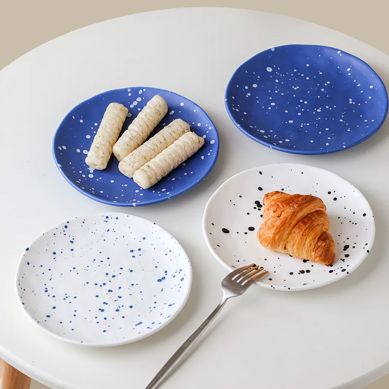 Кружки и тарелки ручной работы с чернилами, белые, черные, синие, 10 х8 см, керамические чашки для кофе, чая, молока, блюдо для хлеба, торта, посу...