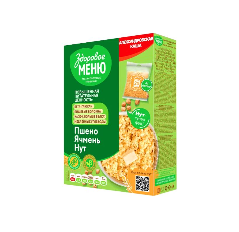 Крупа зерновая Здоровое меню Александровская каша пшено ячмень с нутом 80 г х 5 пакетов