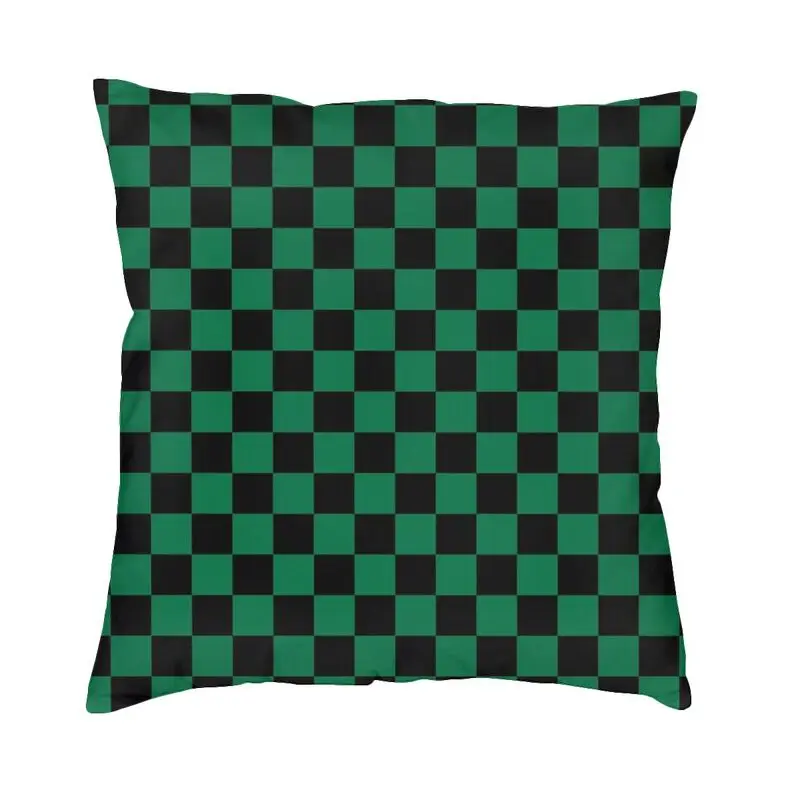 Крутая черная и кадмиевая зеленая Шахматная наволочка для подушки, украшение, 3D печать, Геометрическая искусственная наволочка для гостино...