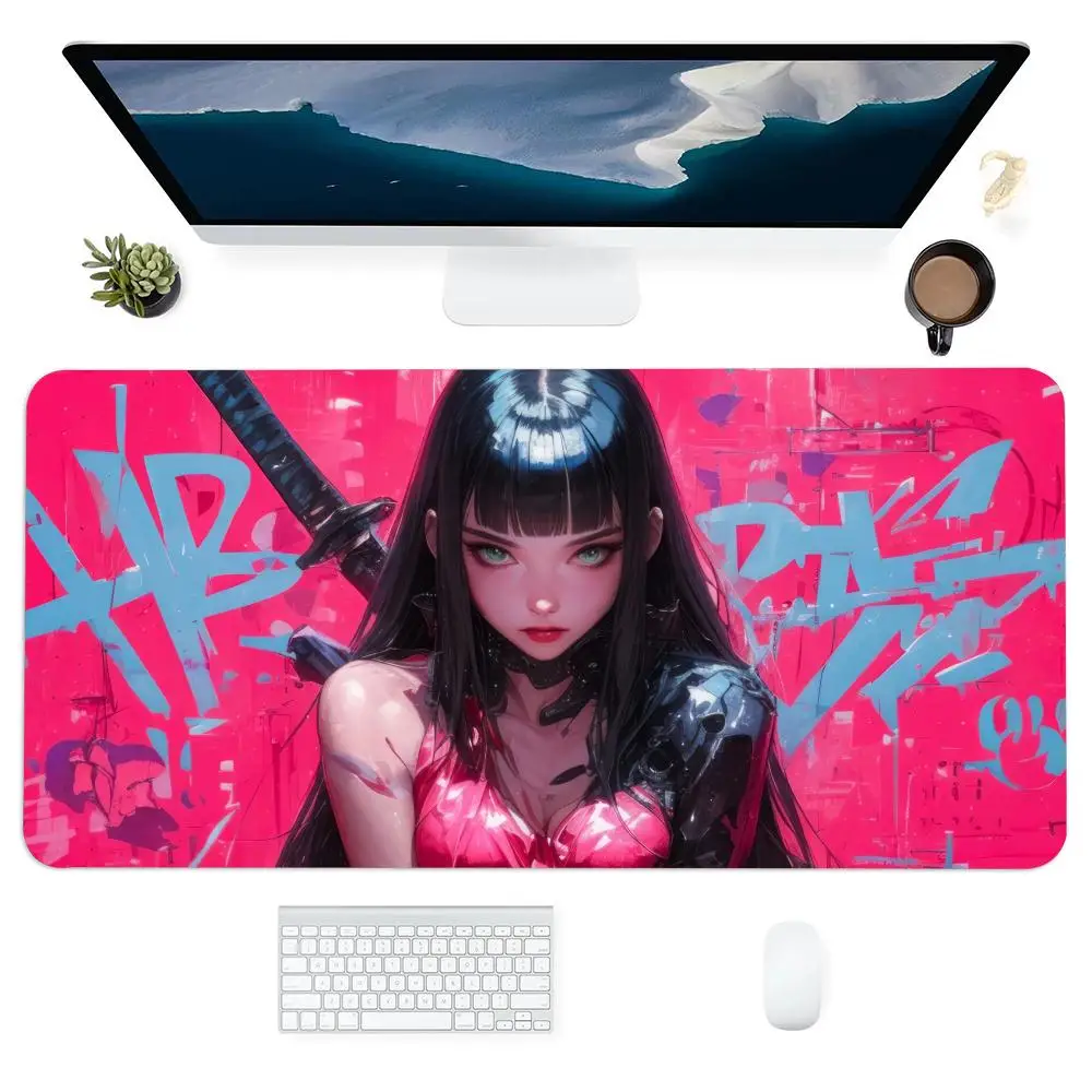 Крутой коврик для мыши с изображением воина для девочек, офисные аксессуары, большой игровой нескользящий коврик для компьютера, ноутбука, планшета, коврик для мыши XXL, игровой коврик для мини-ПК