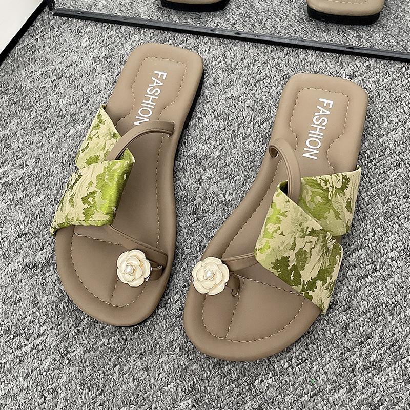 Крутые шлепанцы высокой ценности женские летние для улицы 2025 новые на плоской подошве на плоском каблуке камелия шлепанцы на перемычке 40 зелёный