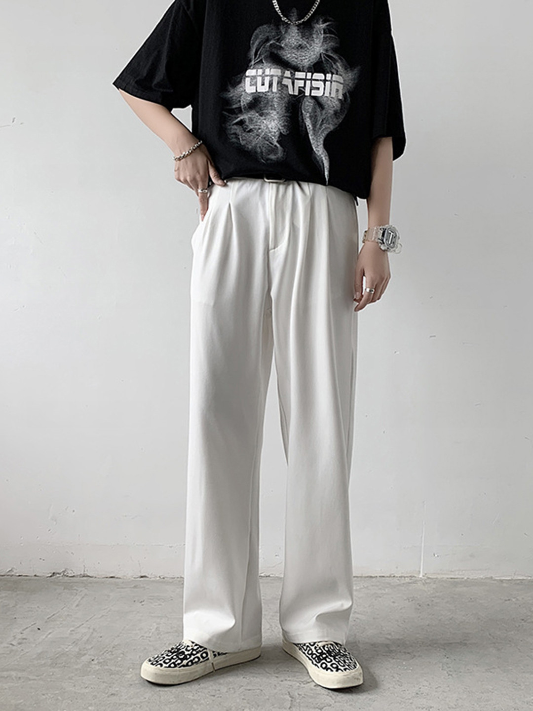HERE&NOW Men Relaxed Straight Leg Straight Fit High-Rise Pleated Trouser, White
