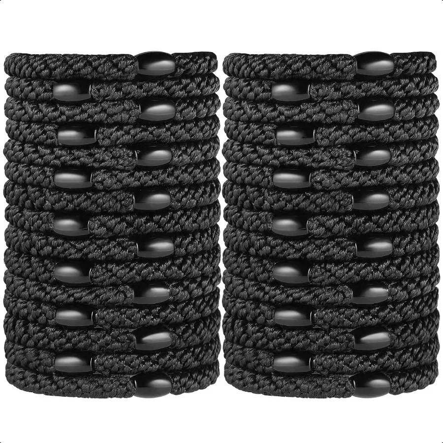 Black Elastic Hair Ties for Women and Girls 30 Pcs No Metal No Slip Braided Ponytail Holders for Thick and Medium Hair