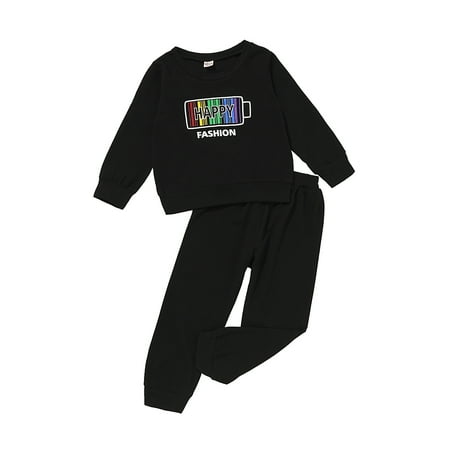 Baby Boys Clothes Battery Print Long Sleeve Round Neck Top +Pants 2Pcs Outfits Set 12-24 Months Black