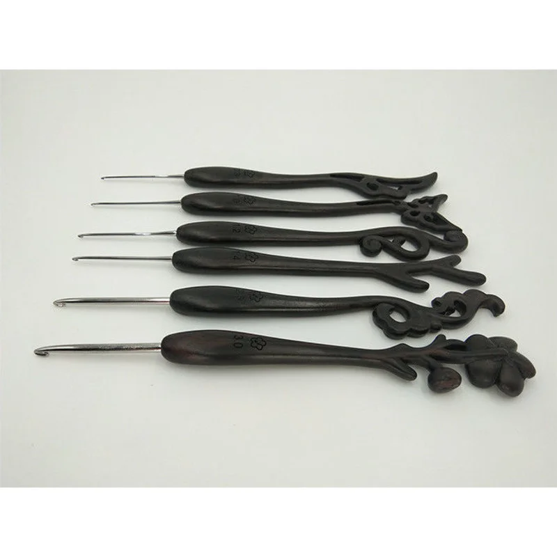Крючки для вязания крючком из нержавеющей стали ручная ручка из эбенового дерева вязание крючком нетканое приспособление для вязания крюч...