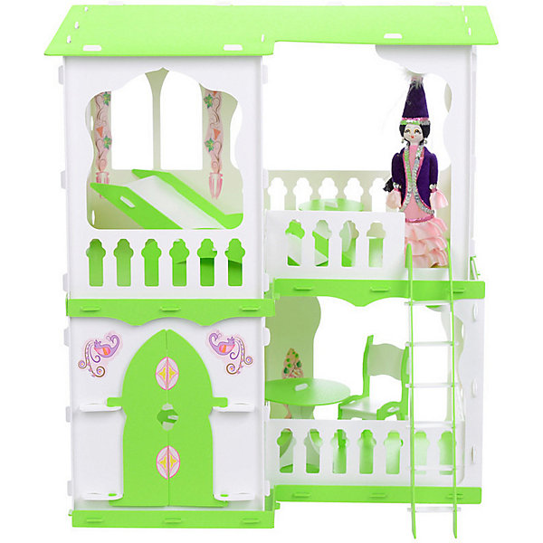Кукольный домик R&C "Алсу" с мебелью, бело-салатовый, Светло-зеленый, Кукольный домик R&C "Алсу" с мебелью, бело-салатовый