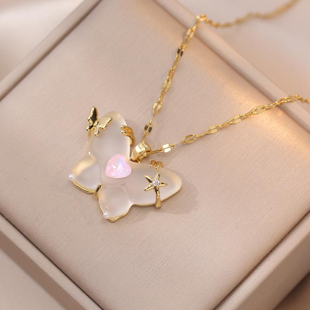 Кулон-бабочка из матового циркона для девочек, ожерелье-цепочка на ключицу, ювелирные изделия золотой/розовый