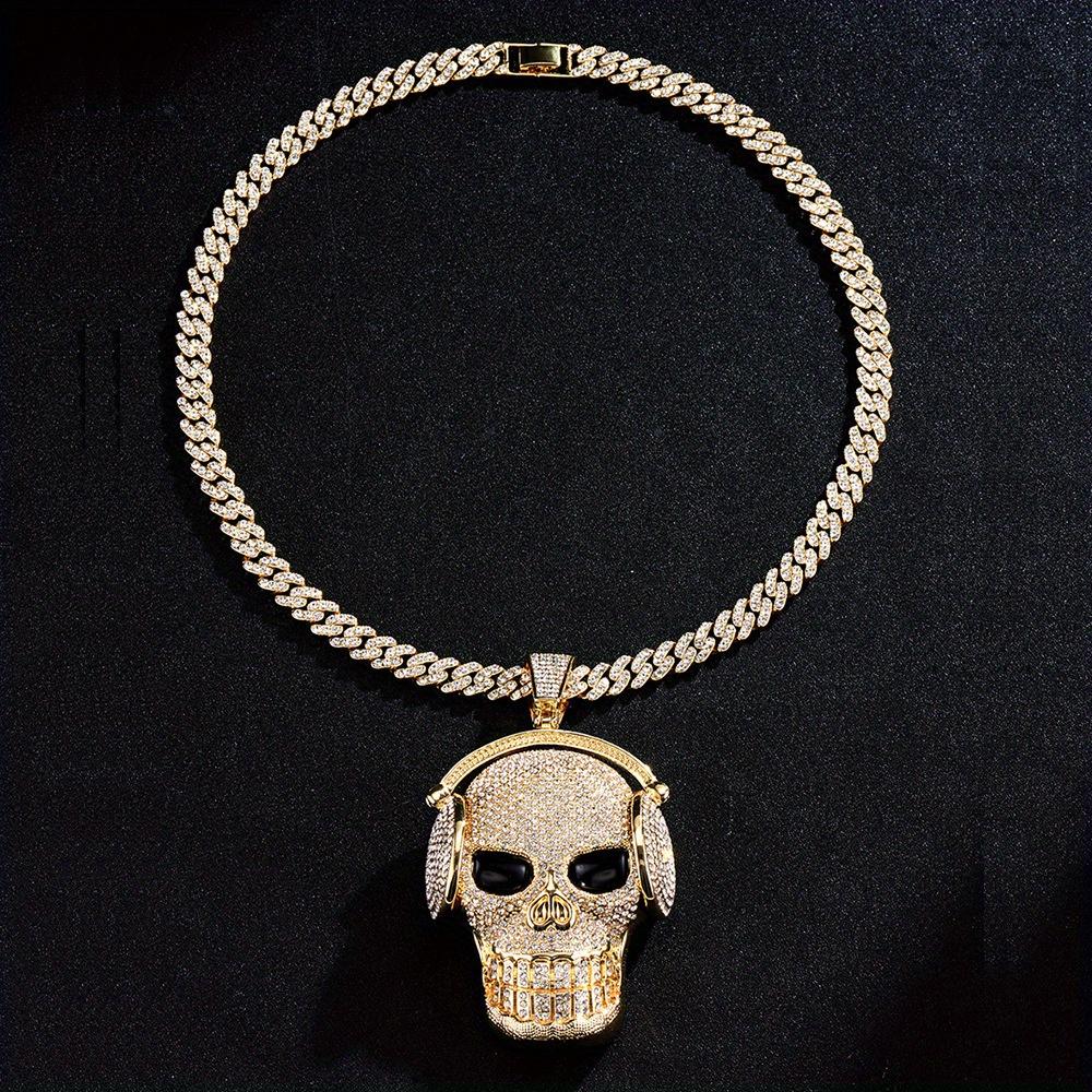 Кулон для наушников с большим черепом, кубинская цепочка со льдом, ювелирные изделия в стиле панк-рок для мужчин и женщин