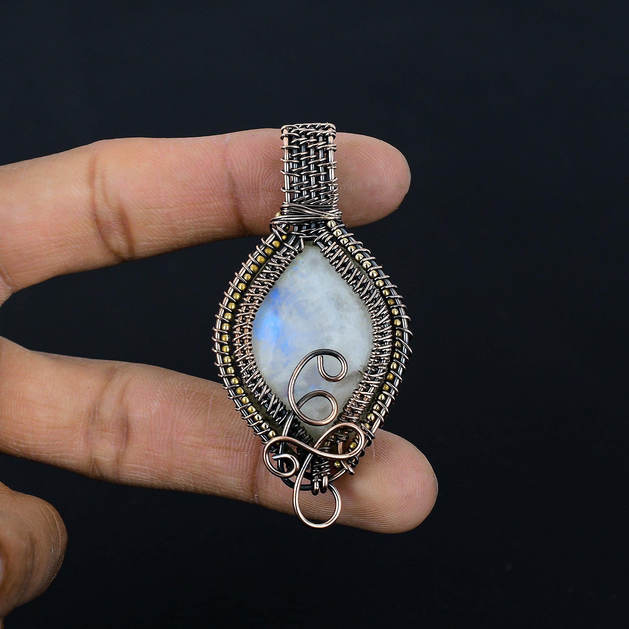 Кулон из лунного камня, обернутый медной проволокой 999 пробы, кулон из драгоценного камня ручной работы, подарок для мамы, антикварное украшение 2.55 Inches
