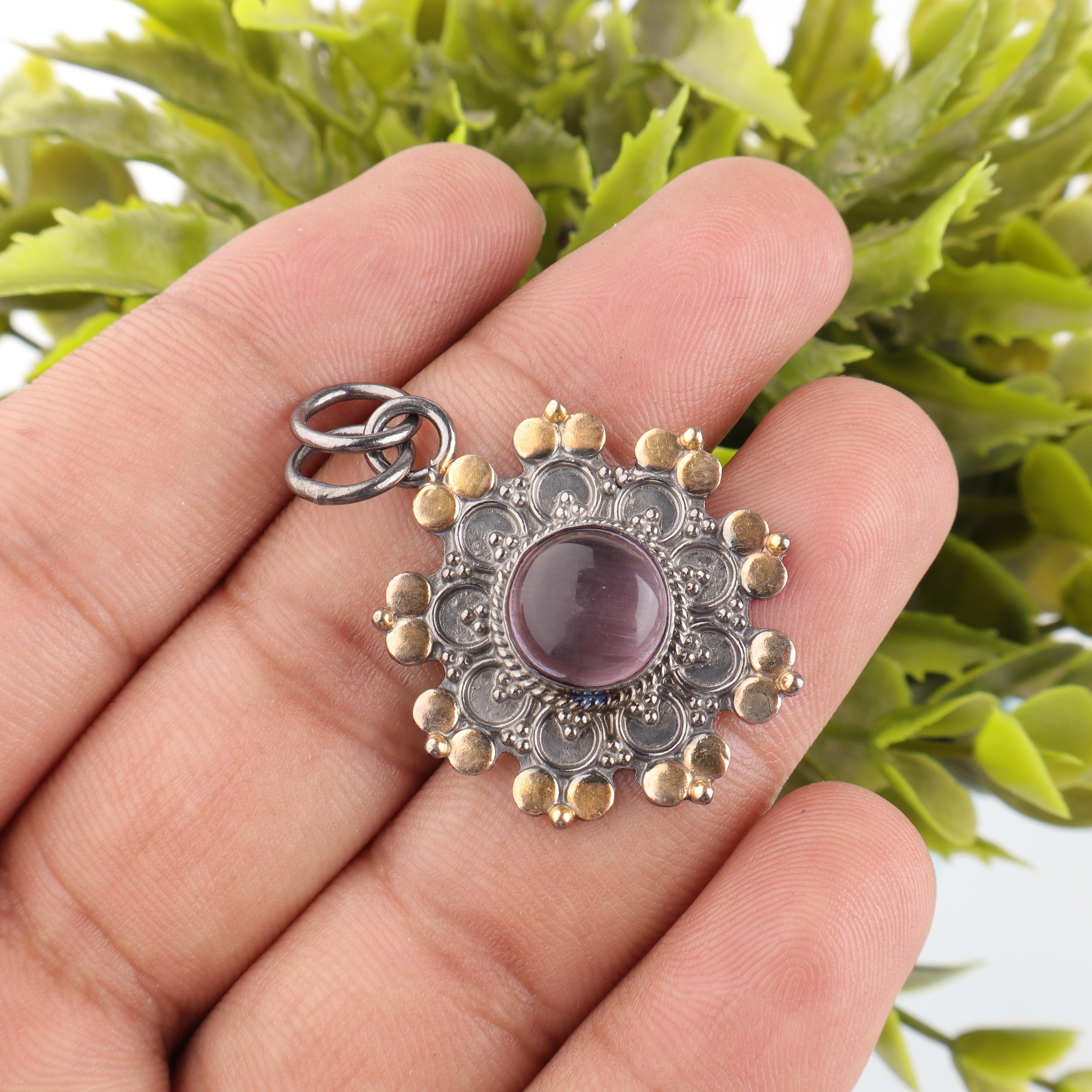 Кулон из серебра 925 пробы с фиолетовым кошачьим глазом, Ювелирные изделия ручной работы из серебра, Великолепные ювелирные изделия с кошачьим глазом для подарка 1.26 Inches фиолетовый