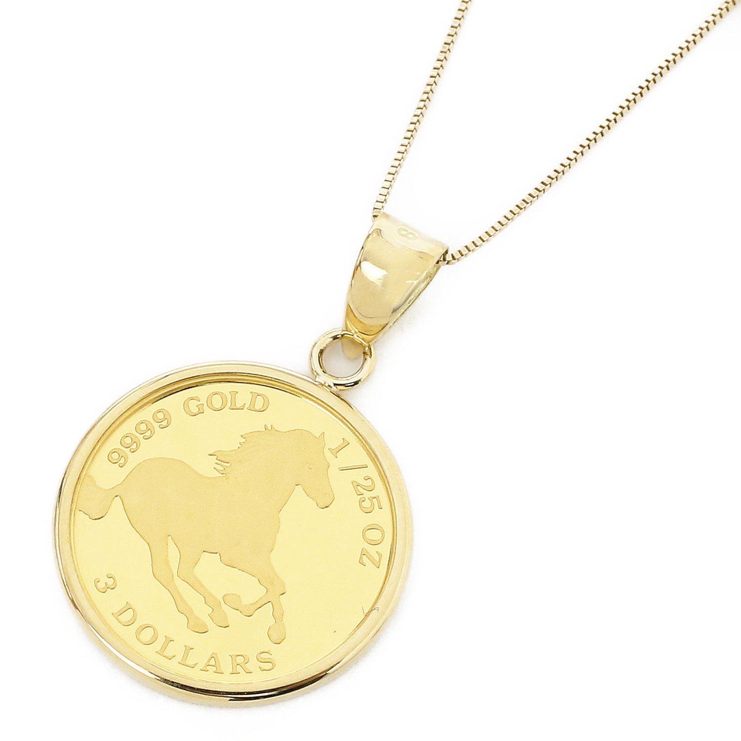 Кулон із чистої золотої монети K24 Золота монета з кіньми Золотий венеціанський ланцюжок Королева Єлизавета
