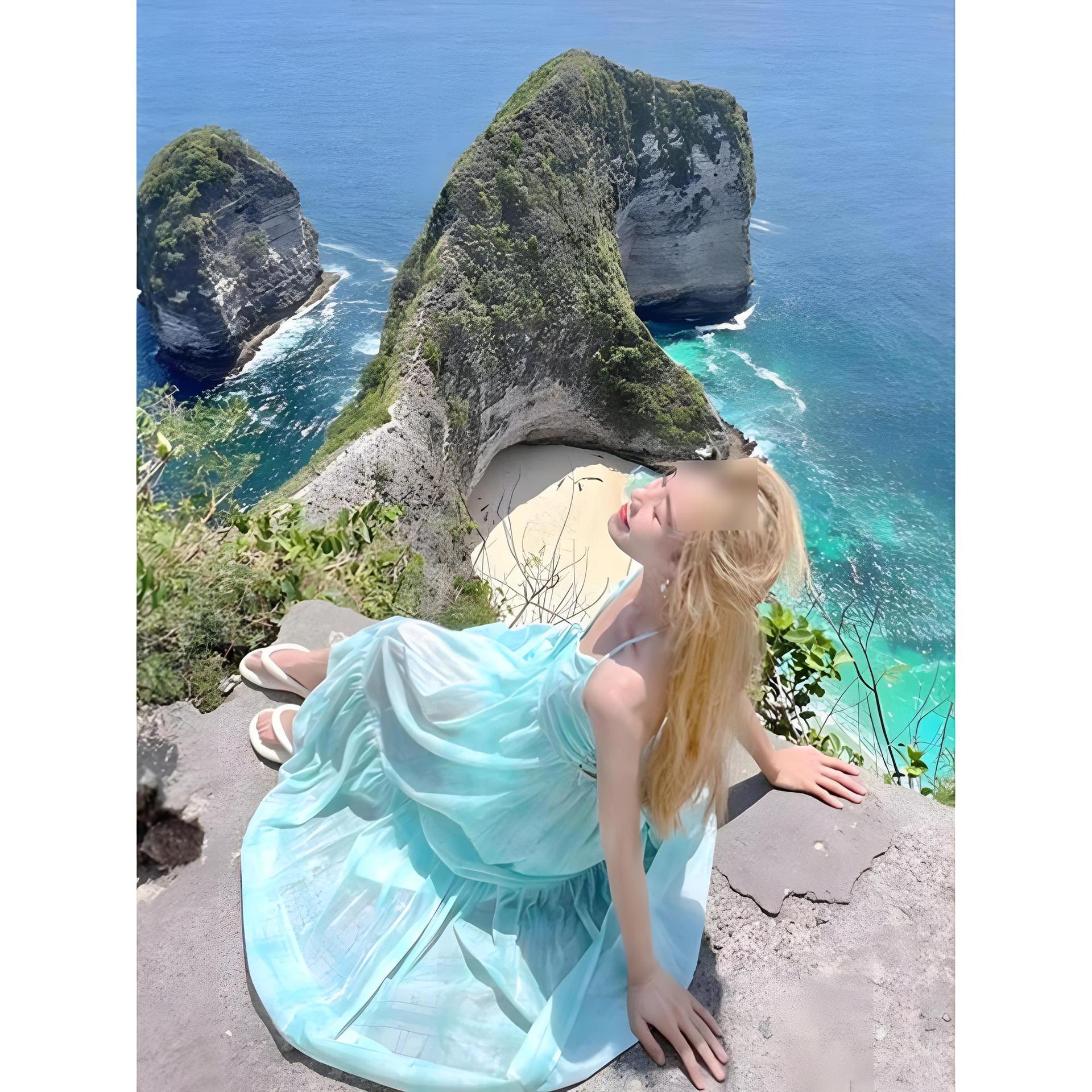 Курортный стиль синее платье-комбинация халтер женское новое летнее повседневное темпераментное стройнящее с открытой спиной длинное платье XL- (recommended 110-60kg)