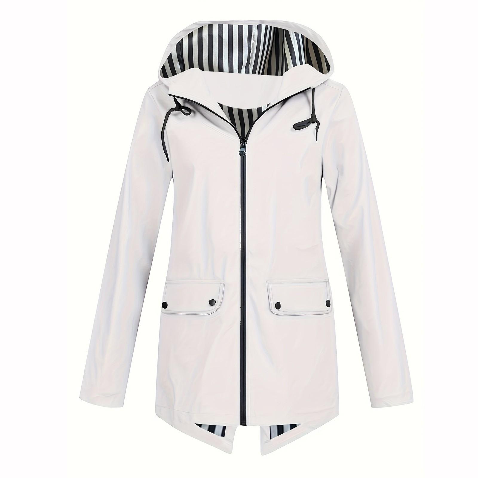 Куртка Женская Большого Размера Упаковываемая Легкая Дождевики Водонепроницаемая С Капюшоном Зимнее Пальто Куртки L белый