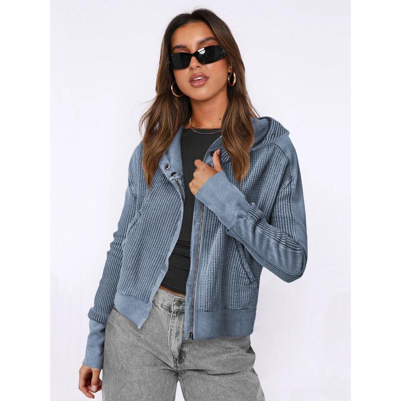 Куртка Толстовка в стиле пэчворк Женская толстовка с капюшоном с напуском Стильная толстовка на молнии с капюшоном Короткий трикотаж XL синий
