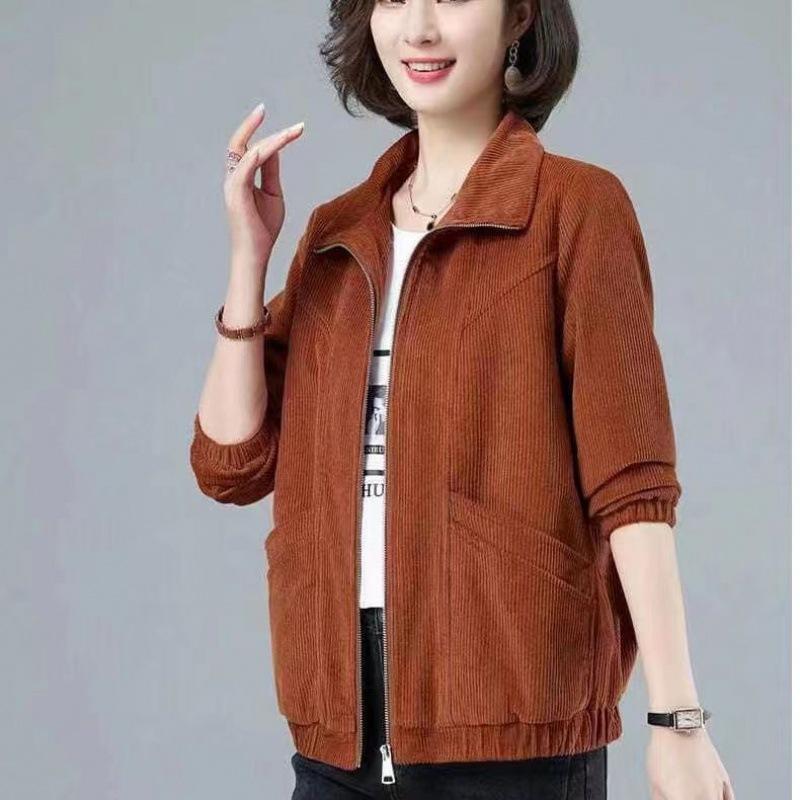 Куртка вельветовая свободного покроя, женское короткое пальто, весна-осень-зима, свободное женское базовое пальто, однотонное повседневное женское пальто на молнии, верхняя одежда больших размеров 5XL