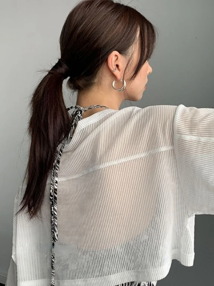 Куртка женская Солнцезащитная в стиле ретро, базовая прозрачная дышащая универсальная свободная укороченная летняя одежда для отдыха в Ко...