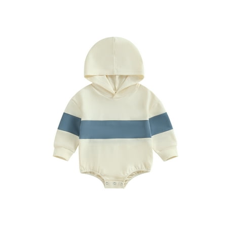 Acuteok Baby Boy Romper Long Sleeve Hooded Contrast Color Fall Bodysuit Clothes for Casual Daily