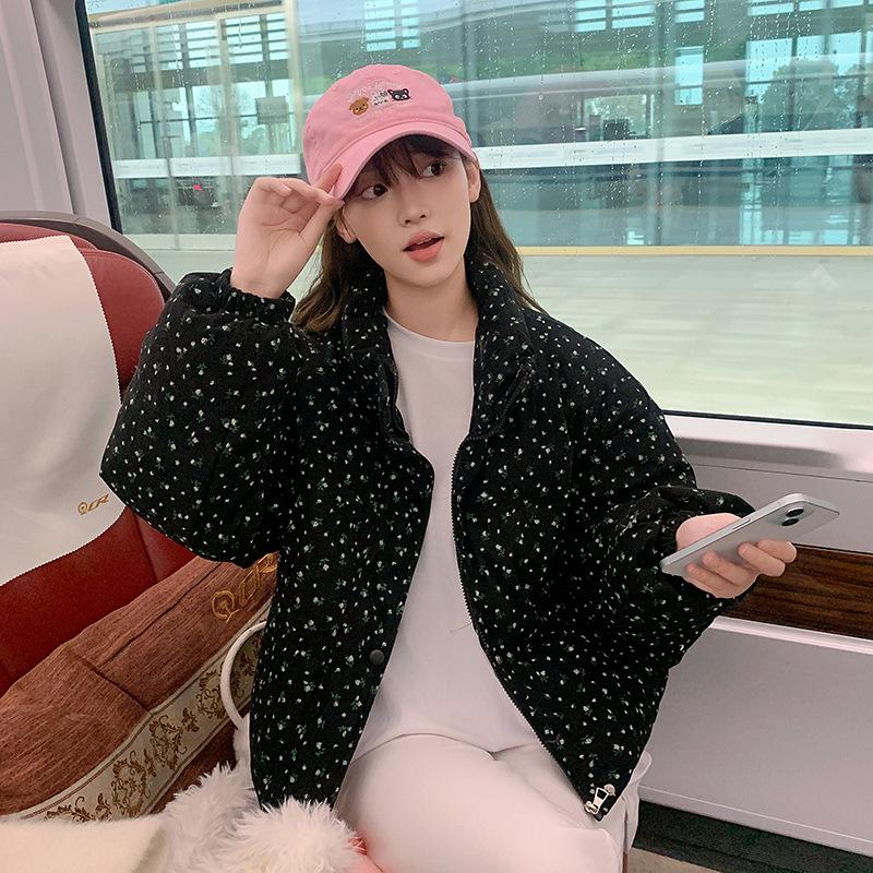 Куртка женская новая зимняя год утолщенная с длинным рукавом хлопковая куртка с цветочным принтом M чёрный