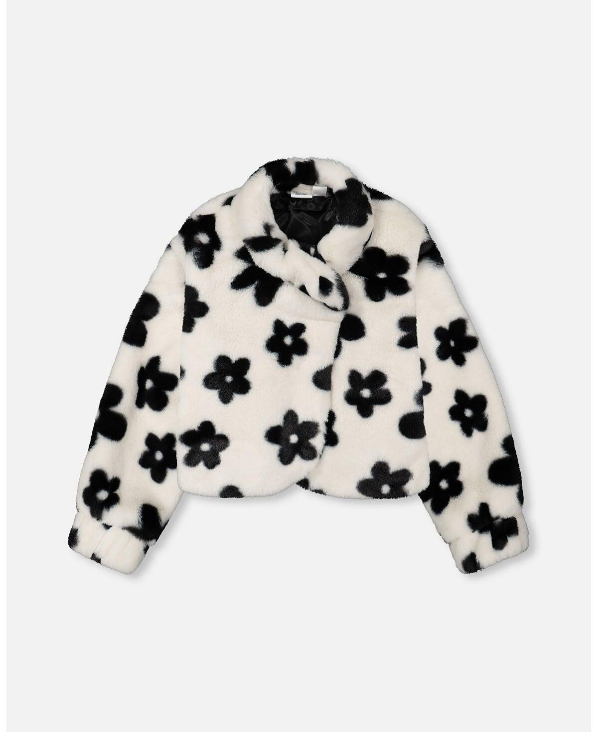 Куртка из искусственного меха для девочек кремового цвета с черным цветочным узором — для малышей|ребенок Deux par Deux