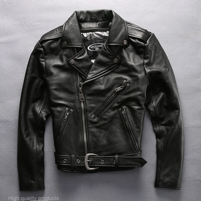 Куртка мужская из натуральной воловьей кожи, мотоциклетная плотная Тяжелая байкерская куртка, черное пальто, Осень-зима