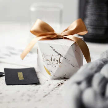 50Pcs Pink / Gray Marble Style Diamond Wedding Favors Candy Boxes Party Gift Box Bomboniera Giveaways Box Return Present Box
