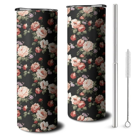20OZ Vintage Floral Pattern Personalized Style Skinny Tumblers & Insulated Tumbler with Straw for Drinkware ,could Travler Gifts