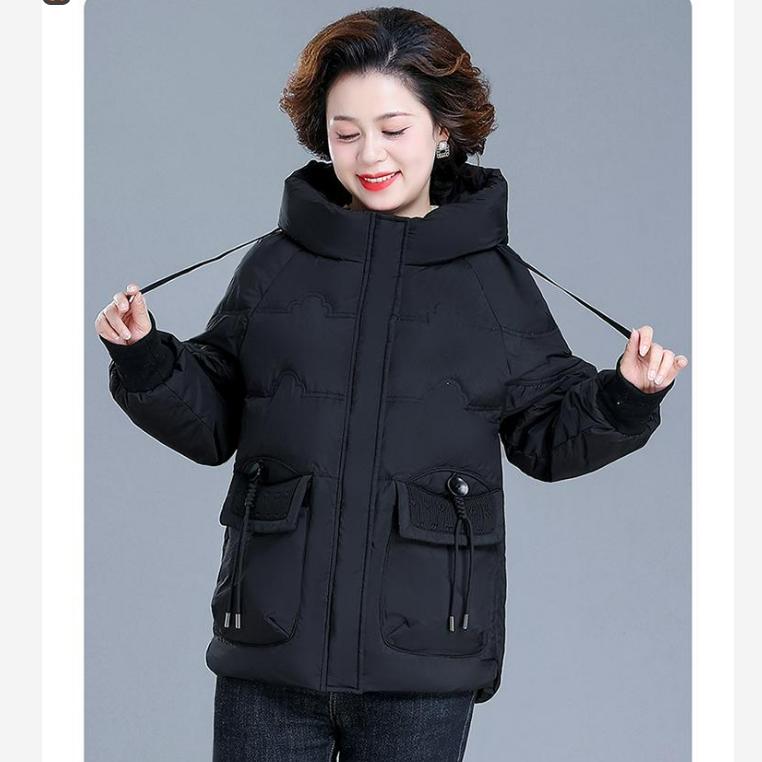 Куртка с тонким утеплителем большого размера, Короткий пуховик, Зимняя одежда, Зимняя одежда для среднего и пожилого возраста, Женские модели S чёрный