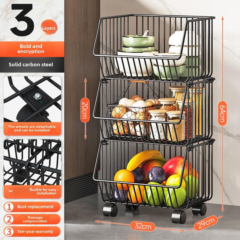Кухонная полка для хранения овощей, полка для хранения фруктов, многофункциональная ручная тележка, многоуровневая напольная полка для хранения, корзина для хранения, корзина