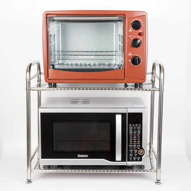 Кухонная полка, счетчик, 2-ярусная рама из нержавеющей стали для микроволновой печи, стеллаж для хранения, организация домашнего хранения