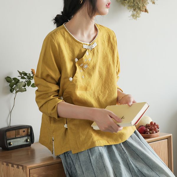 johnature women blouses vintage clothes 2020 full sleeve embroidery shirt floral o-neck loose open stitch women shirts, White