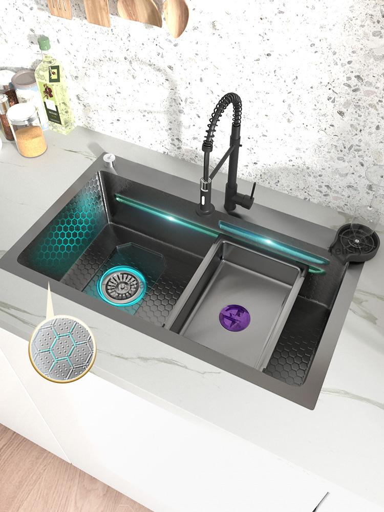 Кухонная раковина с водопадом из нержавеющей стали 304, цифровой дисплей, большая одинарная раковина, раковина для посуды с многофункциональным сенсорным водопадом