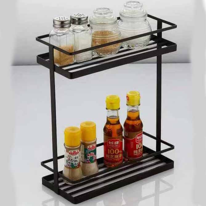 Кухонная стеллаж для хранения приправ Многофункциональная многоуровневая стеллаж для хранения с перфорированным полом Стеллаж для хранения приправ 27.5*12*33cm чёрный
