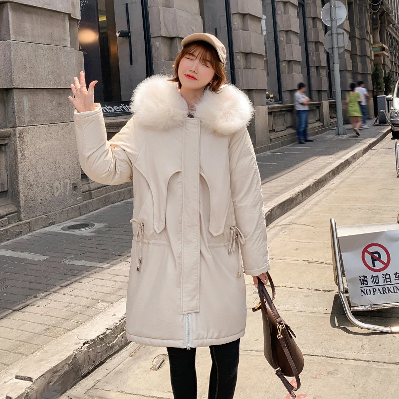 Женская куртка с подкладкой из овечьей шерсти, теплая длинная парка с капюшоном, зима 2019
