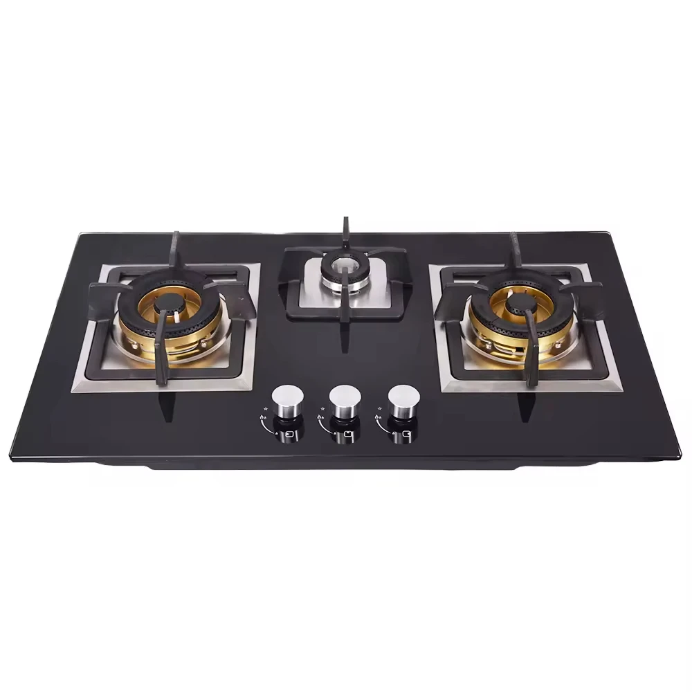 Кухонная техника Варочная панель с тремя плитами Встроенная газовая плита Газовая плита из закаленного стекла Газовая плита с 3 конфорками