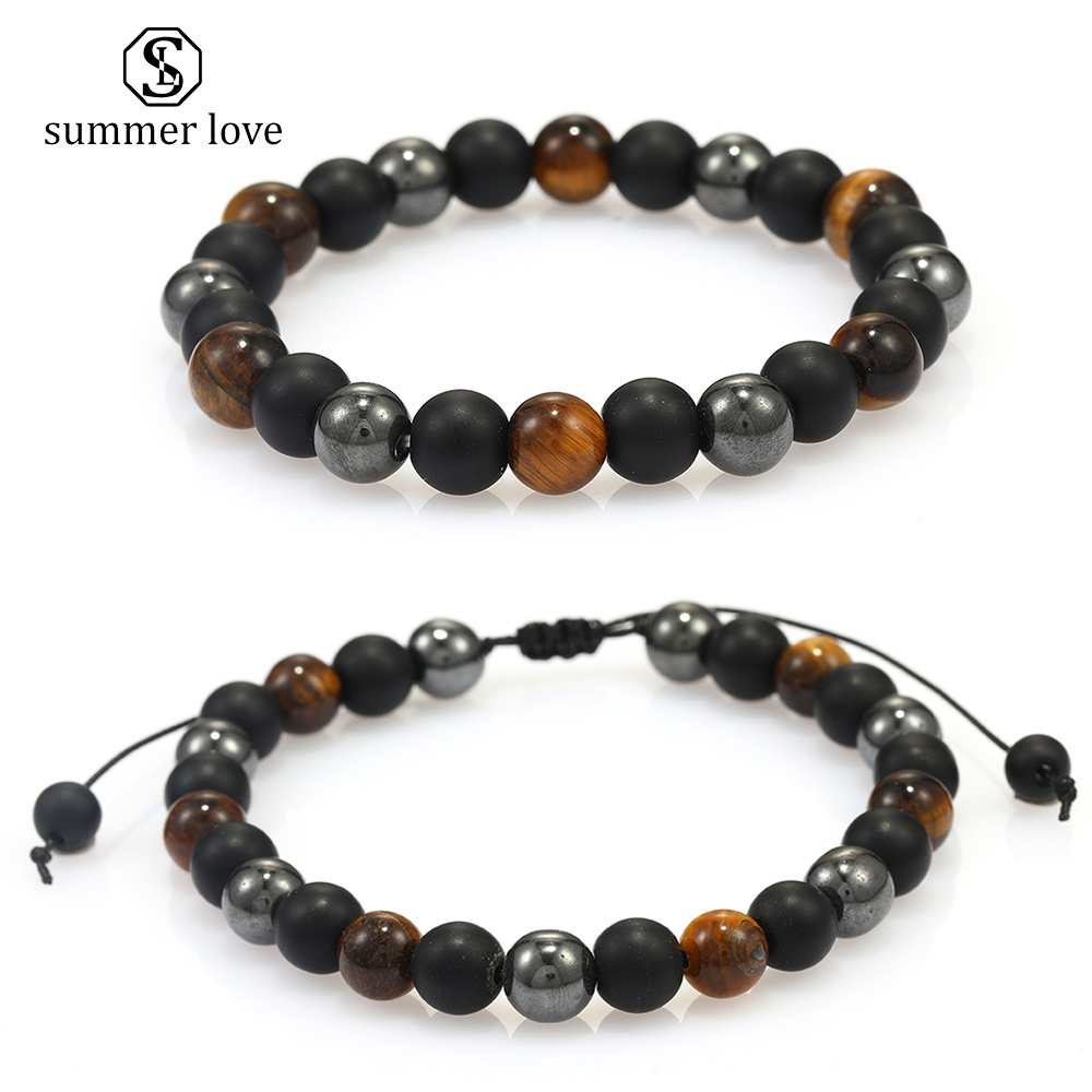 New 8MM Black Agate Tiger Eye Natural Stone Beads Bracelet for Men Women Handmade Braided Elastic Chakra Energy Bracelet Fashion Jewelry