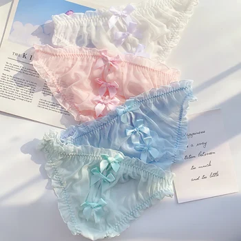 women transparent white gauze bowknot lace underwear sexy briefs roupas femininas com frete gratis 2020 ropa interiores