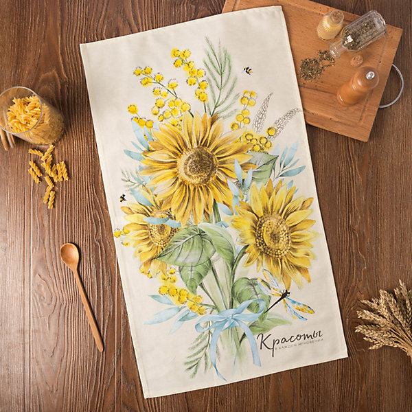 Кухонное полотенце Этель "Солнечные цветы", 40х73 см, Желтый, Кухонное полотенце Этель "Солнечные цветы", 40х73 см